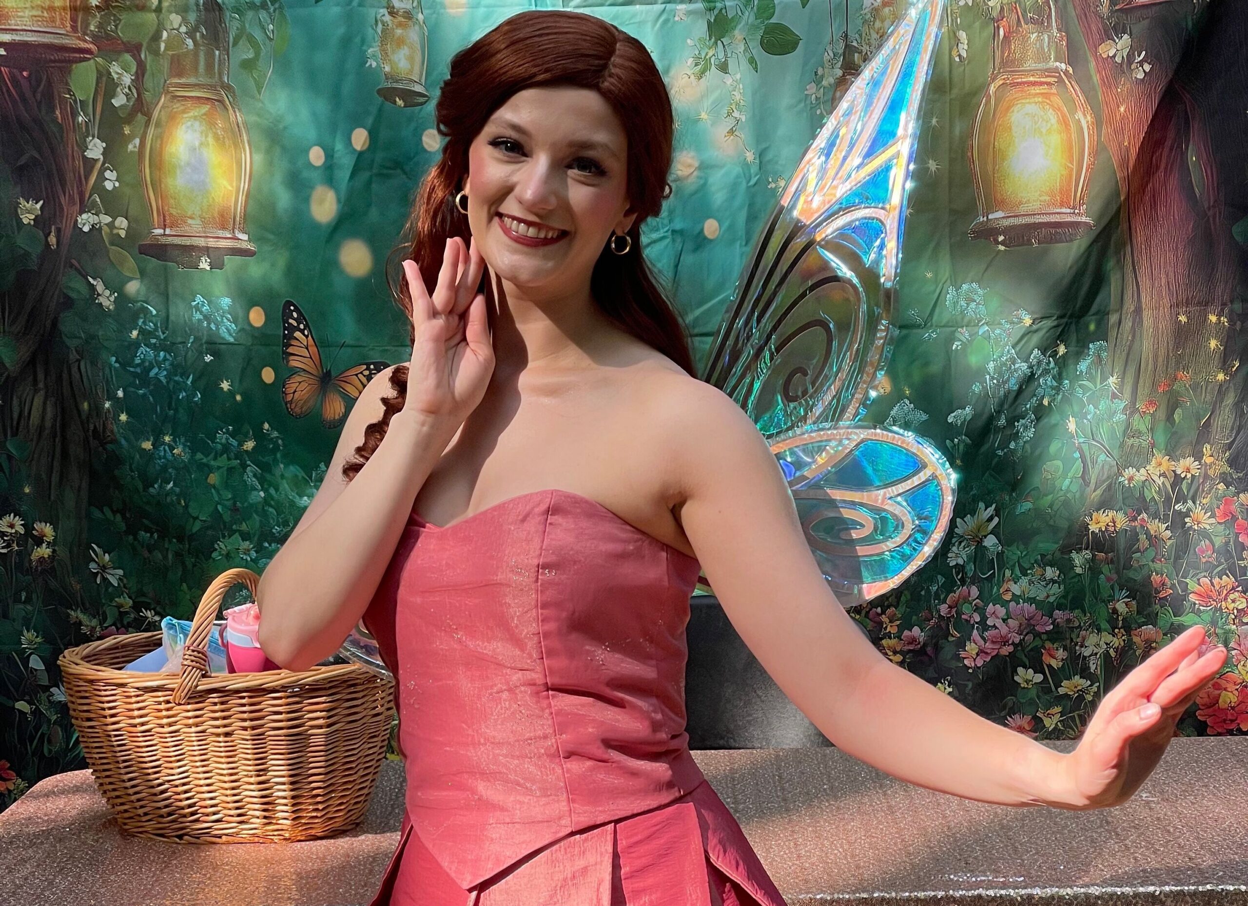 An outdoor whimsical enchanted evening event, celebrating wings and wonder.